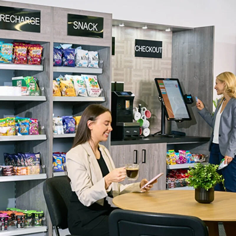 Take your workplace to the next level with Micro Markets! Fresh meals, tasty snacks, and drinks are available anytime – convenient, cashless, and always open.
